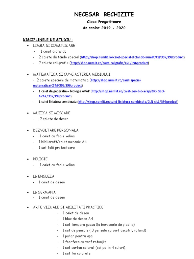 Necesar Clasa Pregatitoare20192020