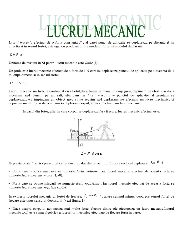 Lectii Virtuale Lucrul Mecanic Forţe Conservative Cazuri Particulare De Lucru Mecanic
