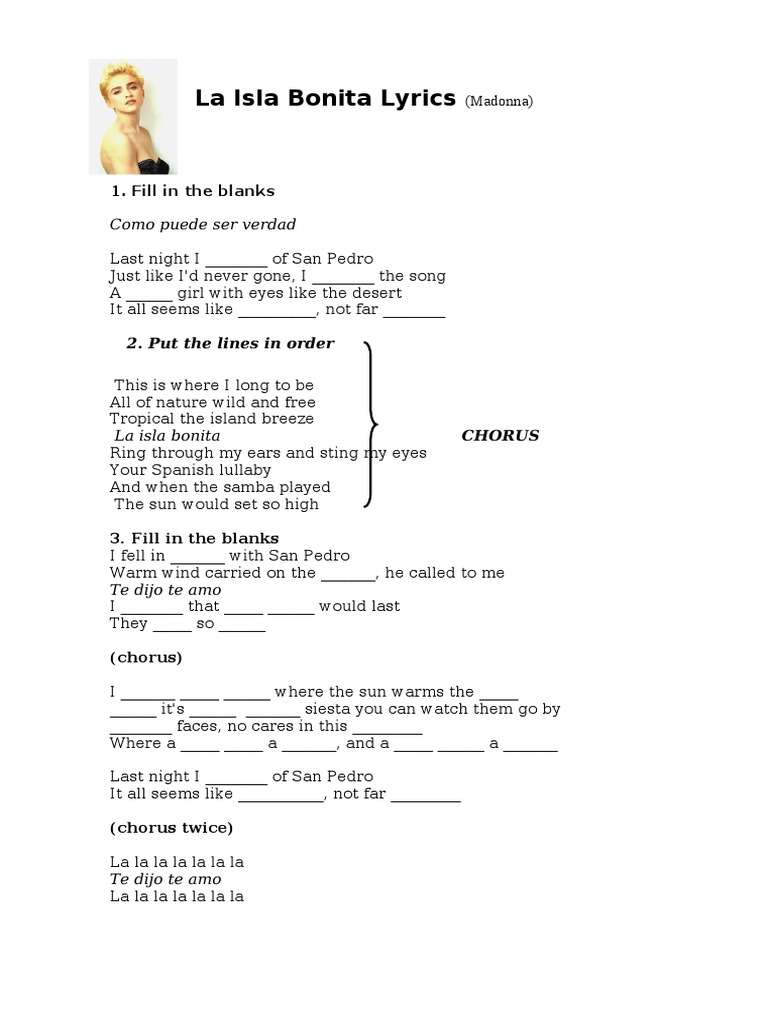 Madonna La Isla Bonita Esl Worksheet By Hyam