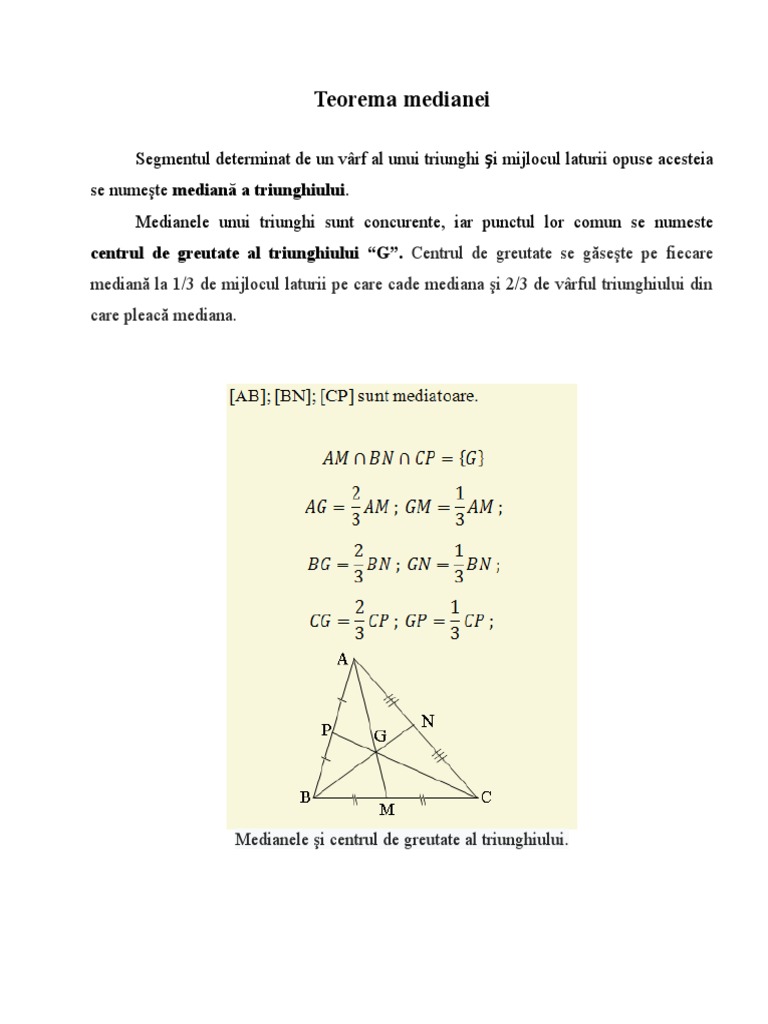 Mediana Si Centrul De Greutate Al Triunghiului