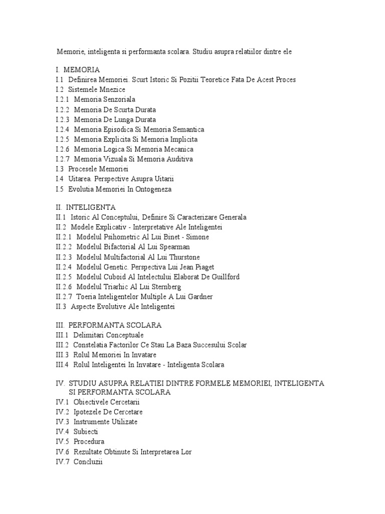 Memorie Inteligenta Si Performanta Scolara Studiu Asupra Relatiilor Dintre El Doc