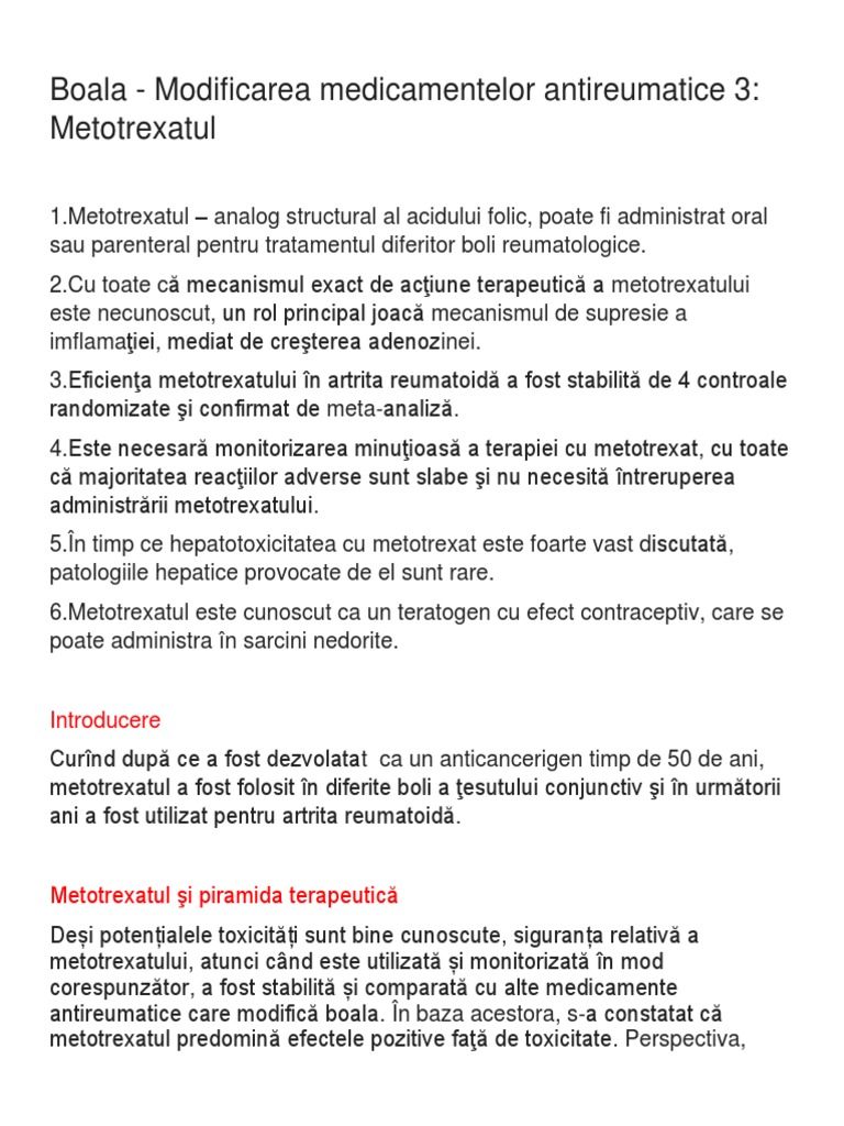 Metotrexat Efecte Indicații Efecte Secundare științifico Practic Medical Journal 2020