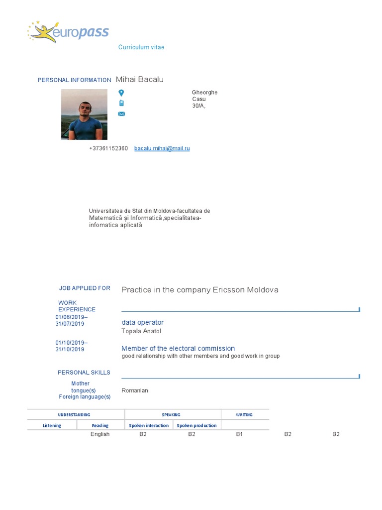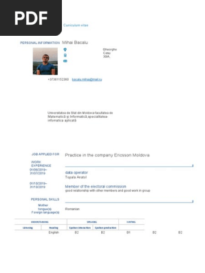 Mihai Bacalu Curriculum Vitae Computing Technology