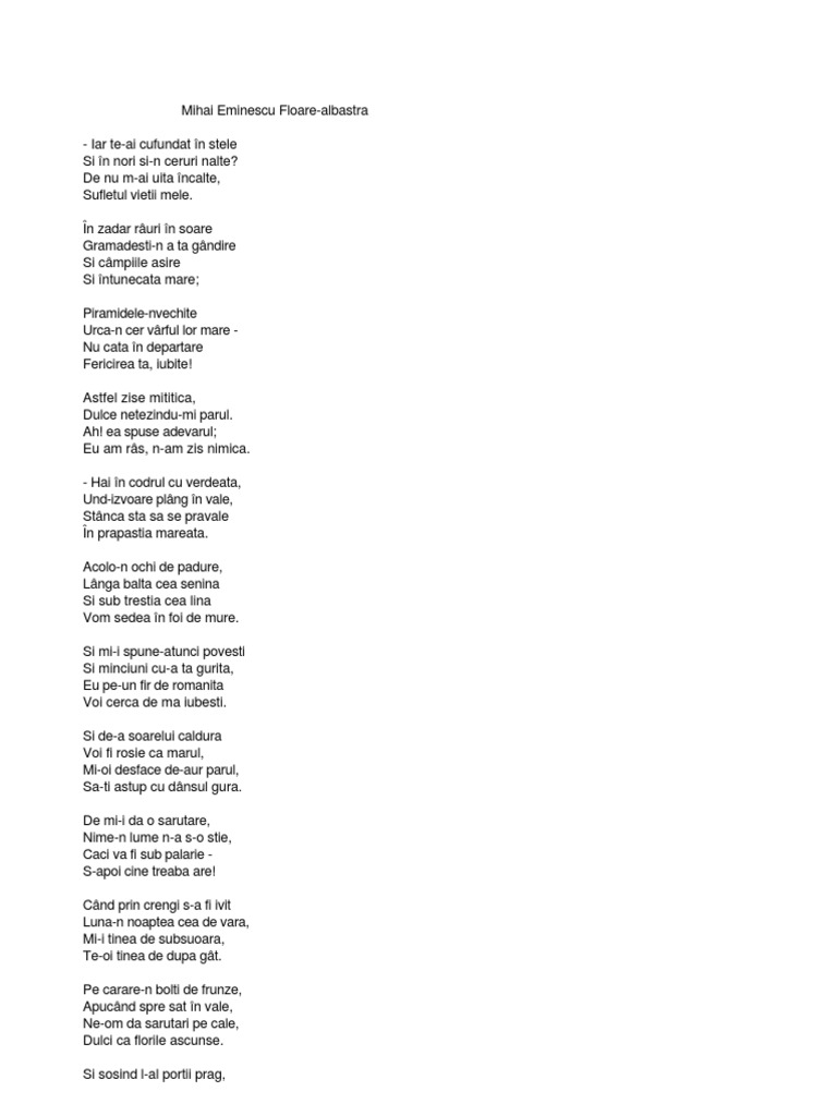 Agendamadlenabcl10 Floare Albastră De Mihai Eminescu