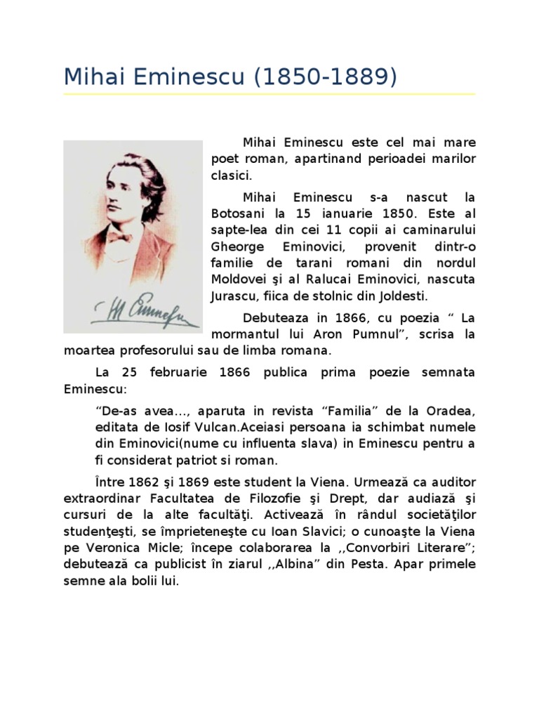 Referat Mihai Eminescu Famouswhy Ro