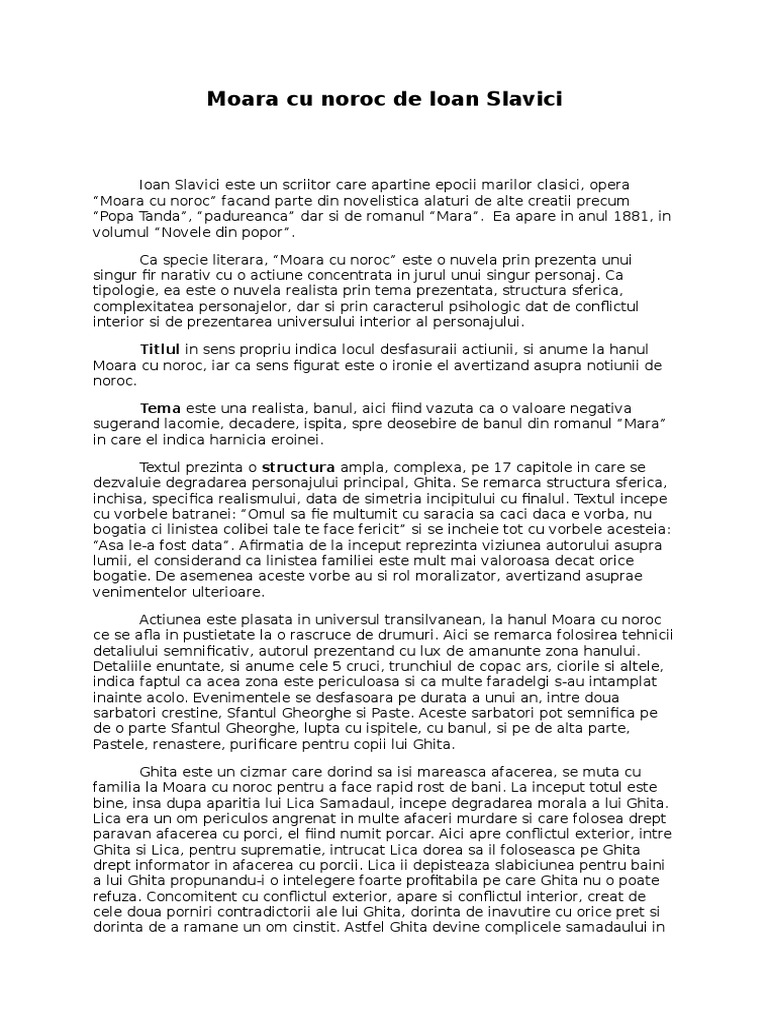Moara Cu Noroc Comentariu Wattpad