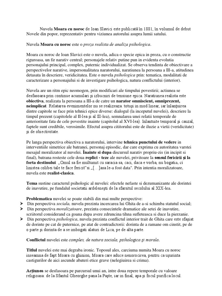 Sinteza Bac Romana Moara Cu Noroc De Ioan Slavici Vylyjzo0rdlm