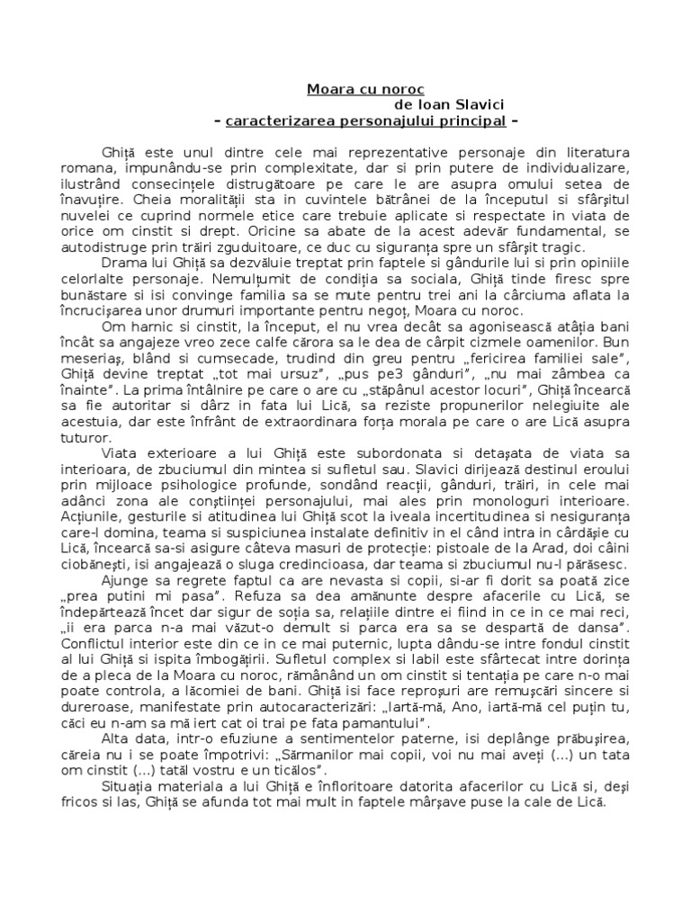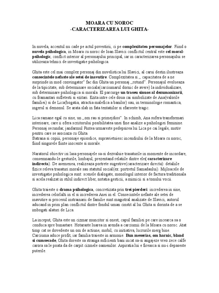 Doc Caracterizare Ghita Moara Cu Noroc De Ioan Slavici Elena Grigorescu Academia Edu