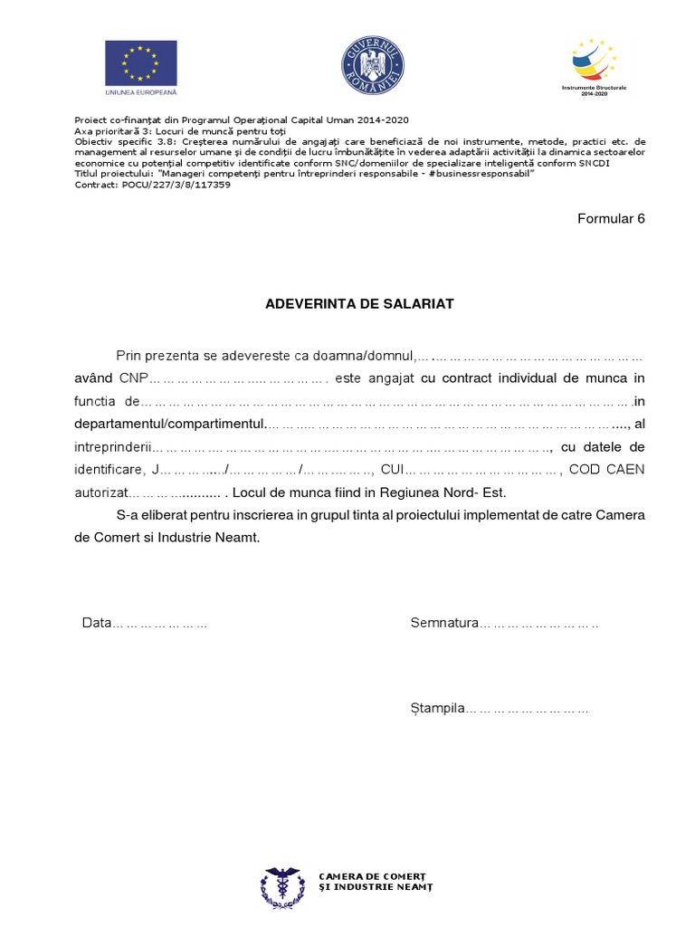 Din acest motiv am decis să oferim acest model de adeverință pentru a vă ajuta în procesul birocratic cu privire la eliberarea de astfel de documente de la locul de muncă. Un model adeverinta salariat poate fi descarcat de pe site ul casei nationale de asigurari de sanatate. Model adeverință salariat adeverința de salariat este unul dintre cele mai cerute documente de către angajați în cadrul companiilor mici și mijlocii. Adeverinta concediu medical adeverinta medicala adeverinta salariat bilet de internare bilet de trimitere bilet trimitere investigatii paraclinice cabinet medical plan de curatenie carnet de dispensarizare a bolilor cronice carnet de control medical periodic cerere de imbalsamare certificat medical constatator al nascutului nou viu control.
