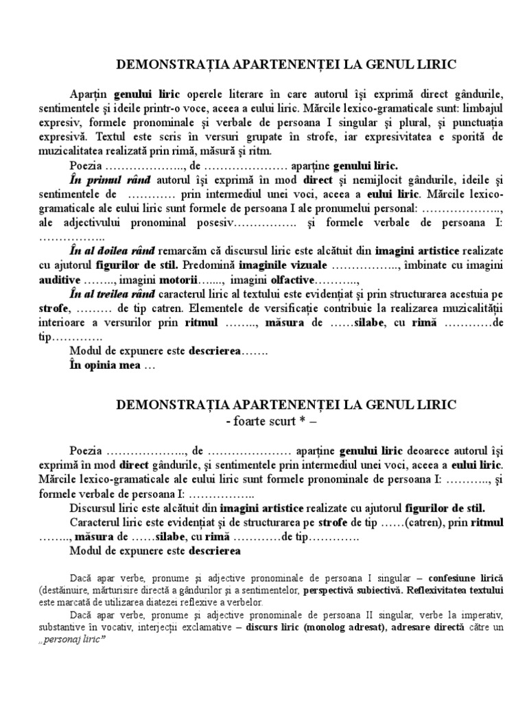 Model Argumentare Gen Liric