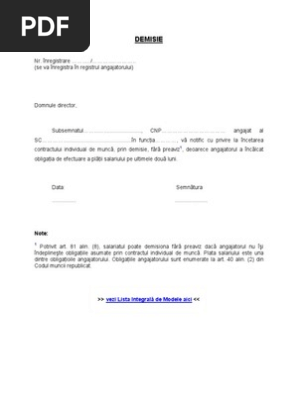 Model Cerere De Demisie Fara Preaviz 01 07 Q6ng3j8g664v