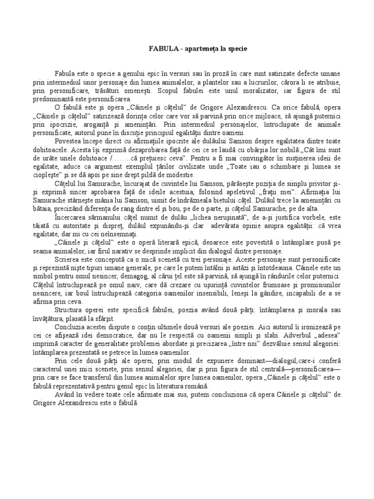 Referat Cainele Si Catelul Demonstratie Ca Este Fabula 338002 Graduo