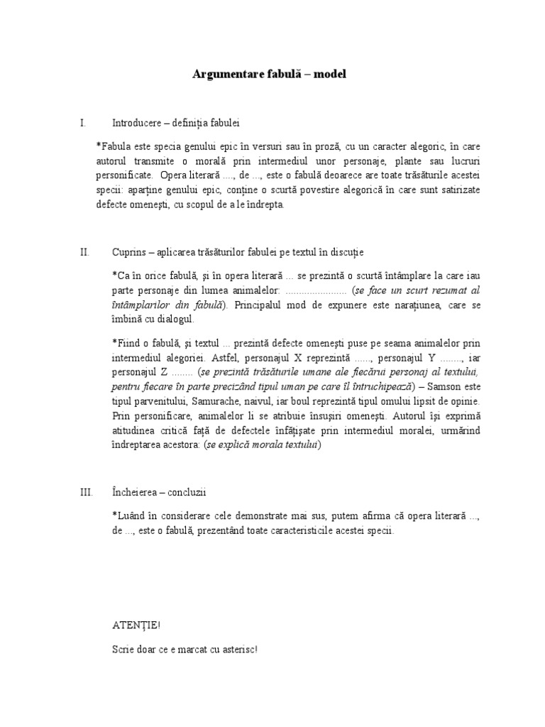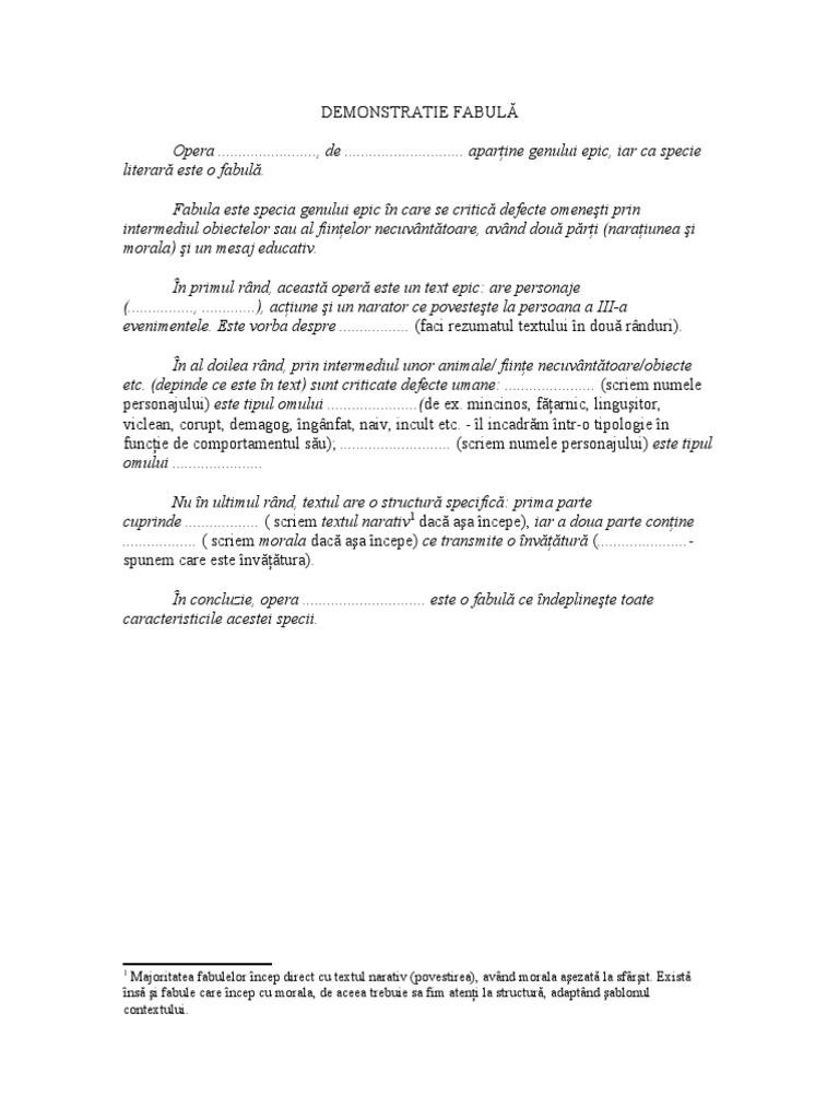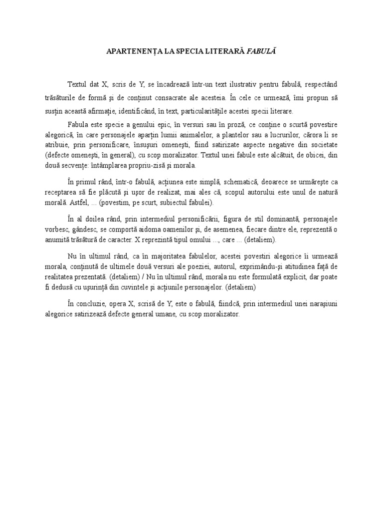 Model De Argumentare A Apartenenţei Unui Text La Genul Epic