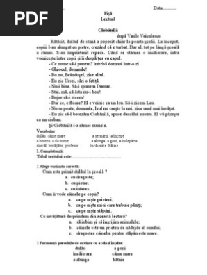 Vreau Urgent O Fisa De Lectura De Clasa A 6 A Va Rog Mult Dau 5 Stele Coronita Brainly Ro