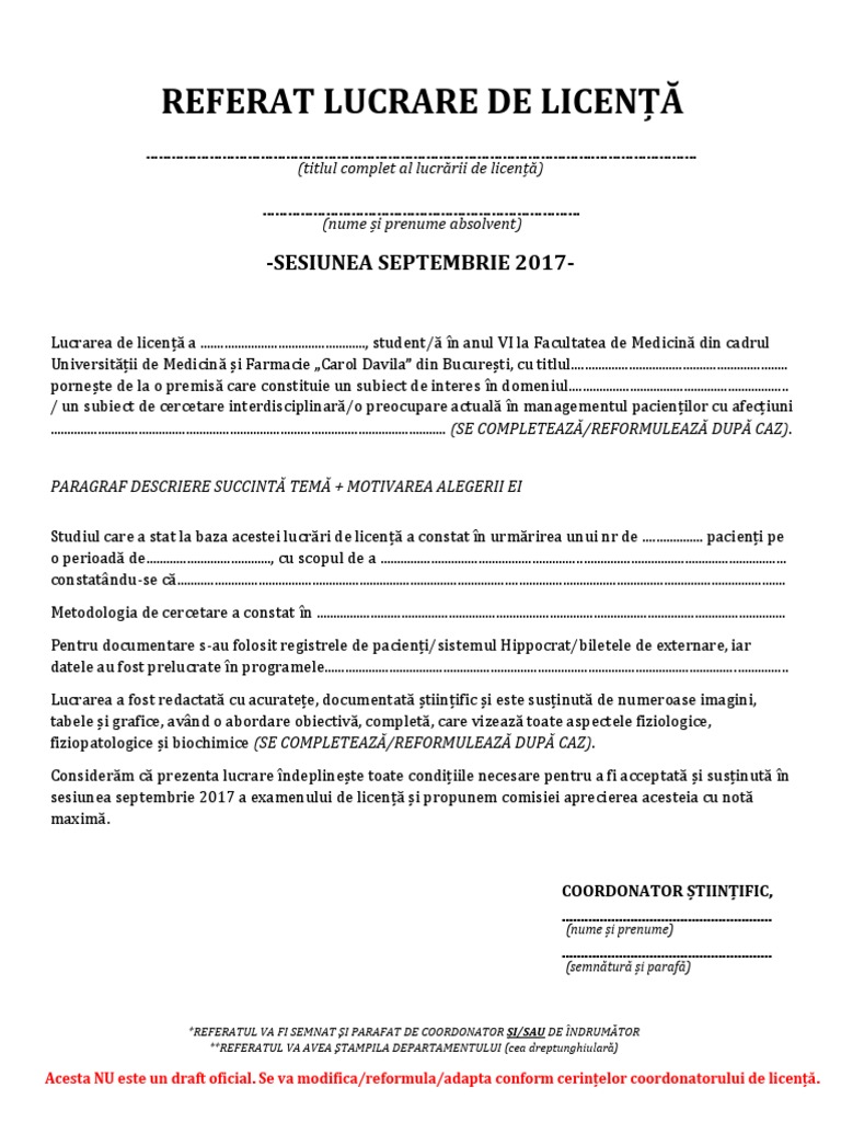 Model Referat Lucrare De Licenta Medicina