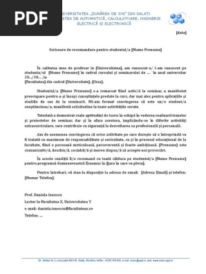 Model Scrisoare De Recomandare Student