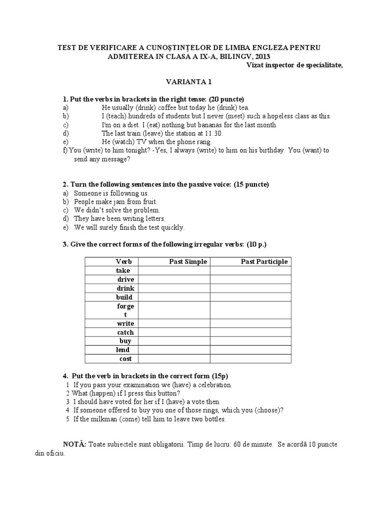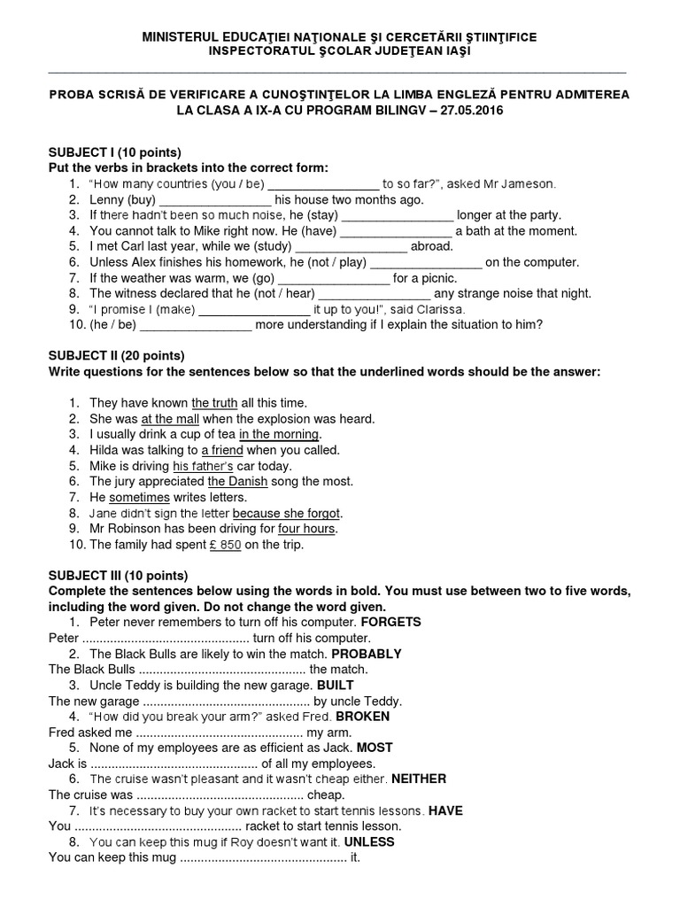 Limba Engleza Subiecte Scris Testare Bilingv 2016 Pdf Money