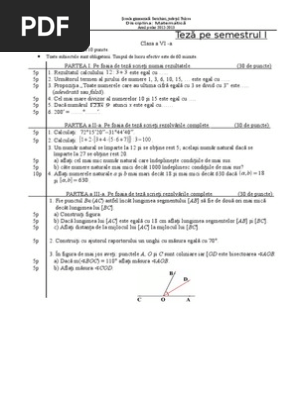 Teza Matematica Clasa 6 Sem 1 Varianta 1 Geometrie