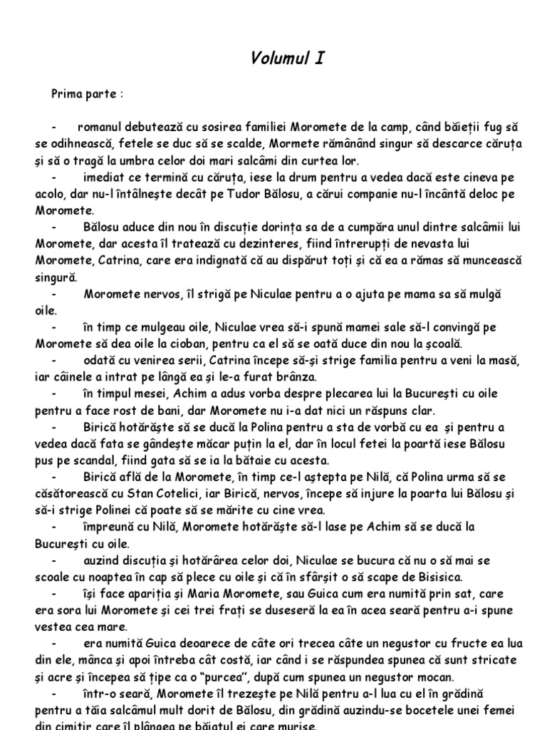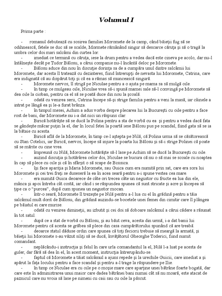 Morometii Rezumat Vol I Si Ii Ro