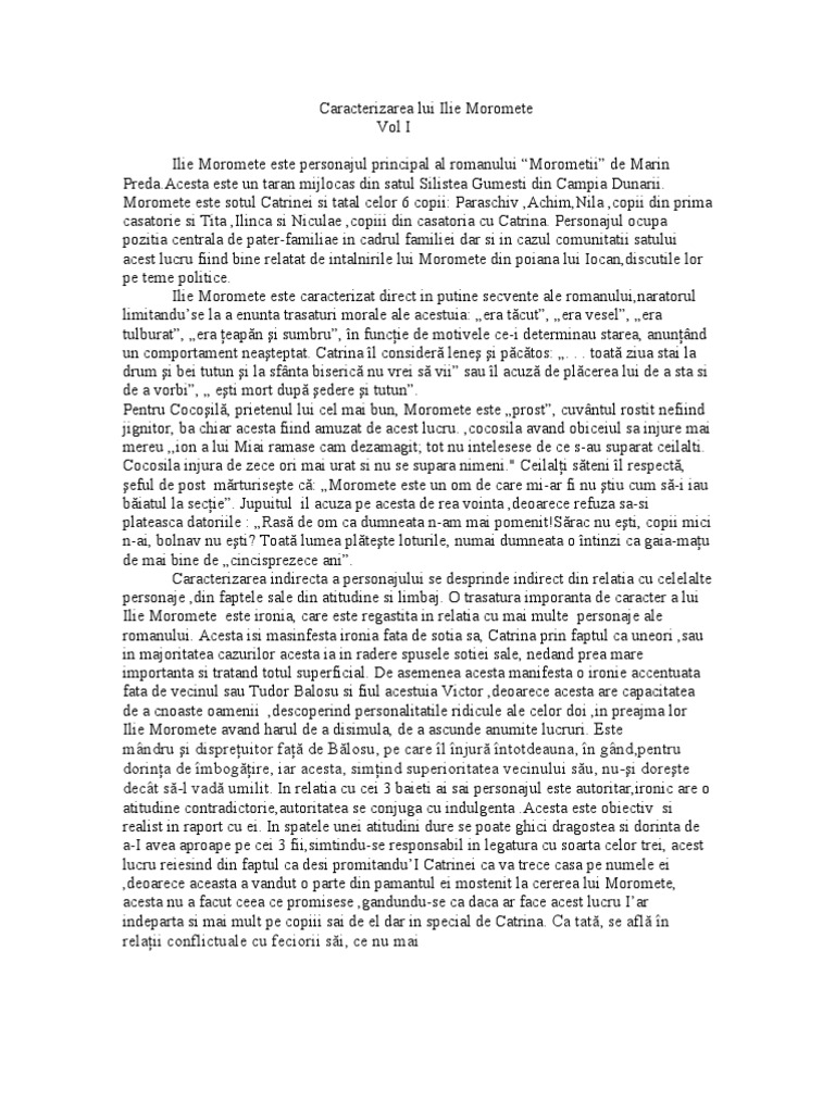 Doc Morometii De Marin Preda Comentariu Literar Referat Ursu Catalin Ionut Academia Edu