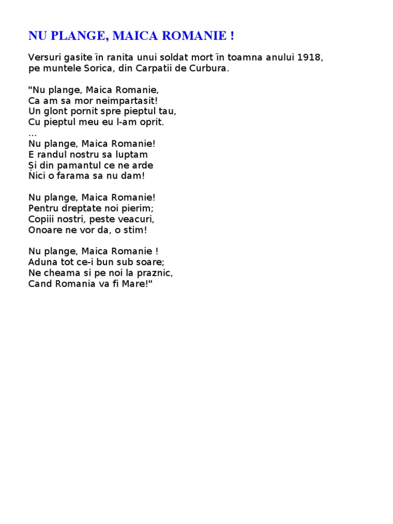 Poezie De Suflet Romanesc Nu Plange Maică Romanie