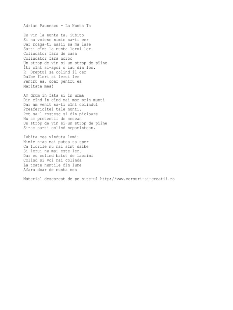 Hrusca Nunta De Flori Versuri